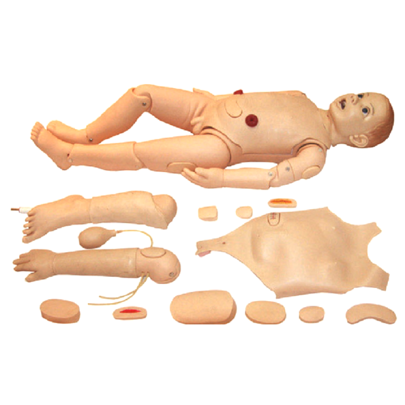 Our Child Nursing Manikin is designed to cover various critical aspects of pediatric care, including patient assessment, medication administration, and responding to emergent situations. It offers lifelike responses, palpable pulses, and realistic anatomical landmarks, creating an immersive learning experience. This advanced manikin is ideal for nursing schools and training programs, offering a dynamic and engaging environment to enhance pediatric nursing skills. By bridging theoretical knowledge with hands-on practice, our Child Nursing Manikin prepares students to deliver high-quality and compassionate care to pediatric patients. Elevate pediatric nursing education with this state-of-the-art manikin, ensuring students are wellequipped to navigate the unique challenges of caring for children