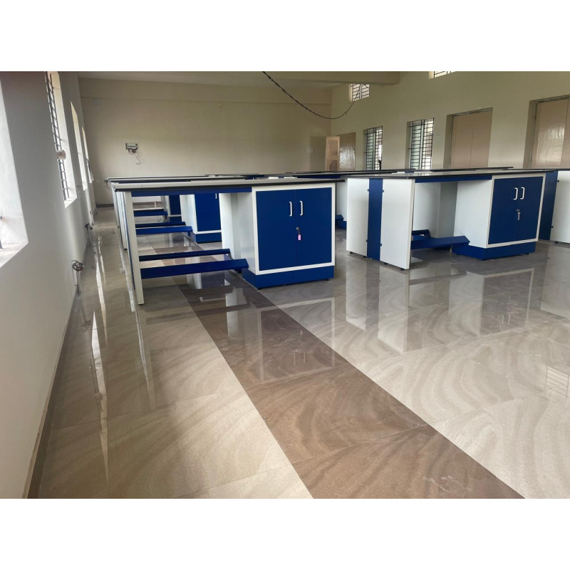 The island table is generally made with a strong metal frame and a durable granite or chemical-resistant top, which ensures stability and long-lasting performance. It is designed to withstand heavy instruments and daily laboratory use. The table often includes storage cabinets, drawers, and shelves for keeping physics apparatus and tools organized.